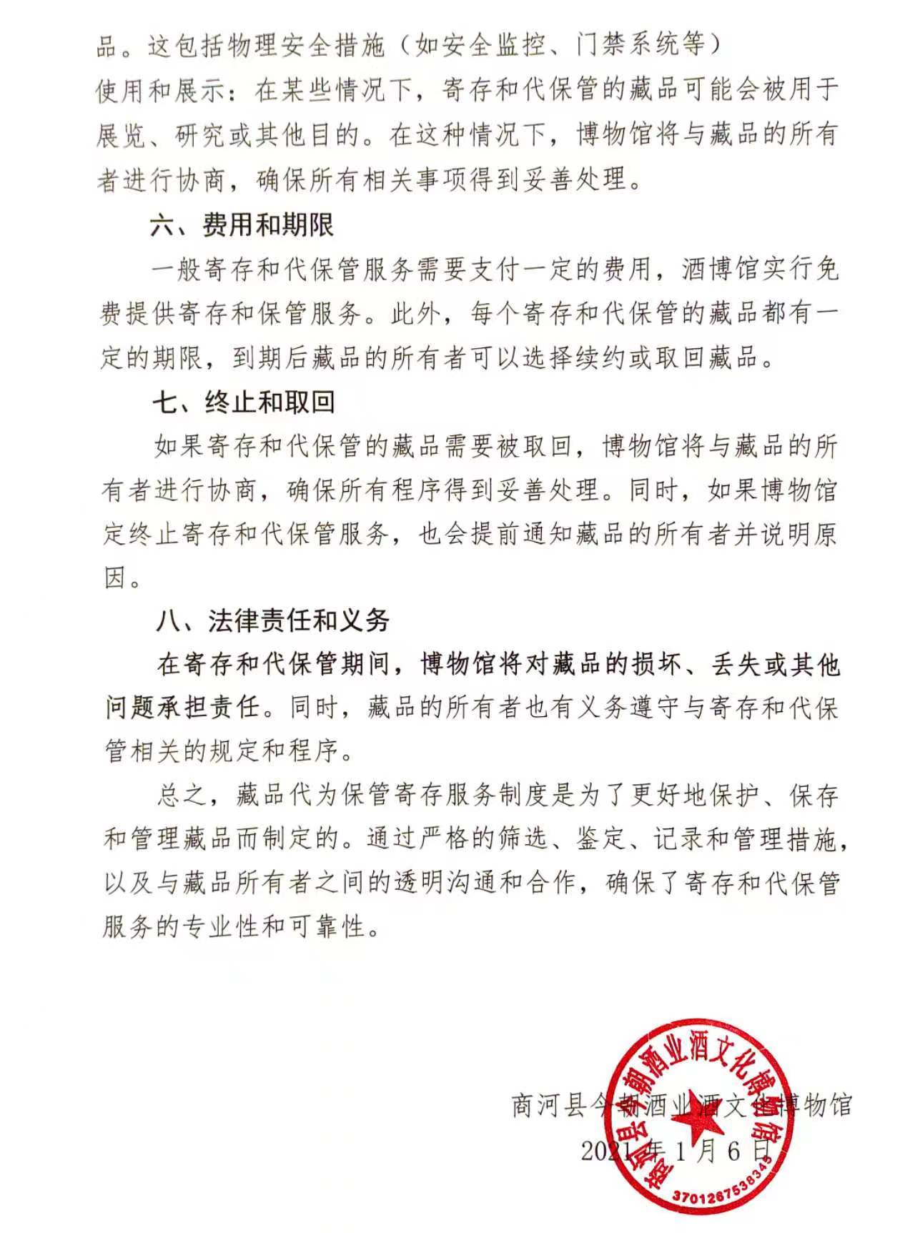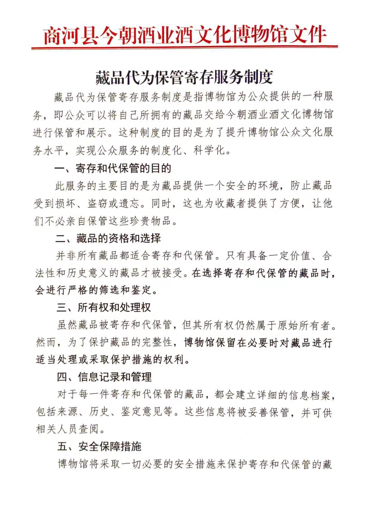 酒博馆藏品代为保管寄存服务制度